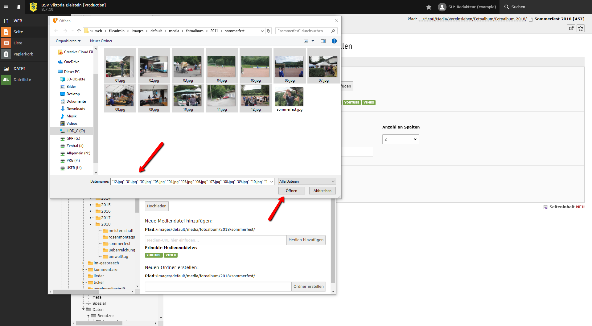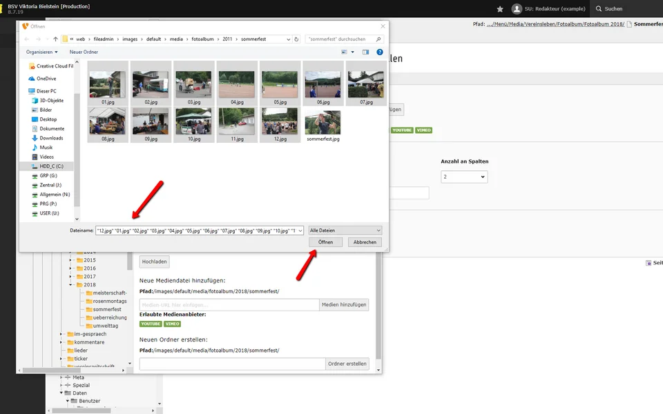 Im Anschluss wählst du eines oder mehrere Bilder von deinem Computer / Smartphone aus und klickst auf Öffnen.