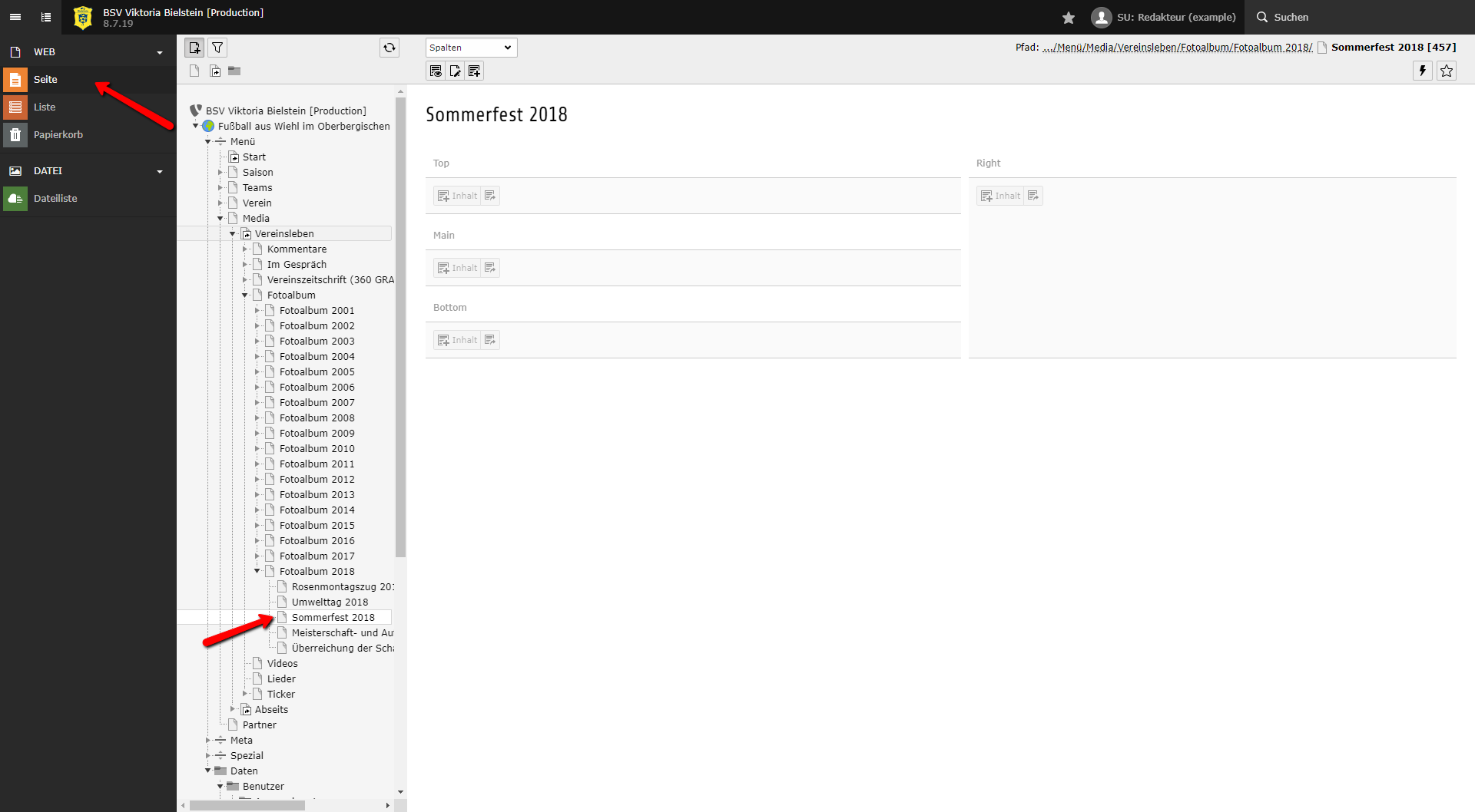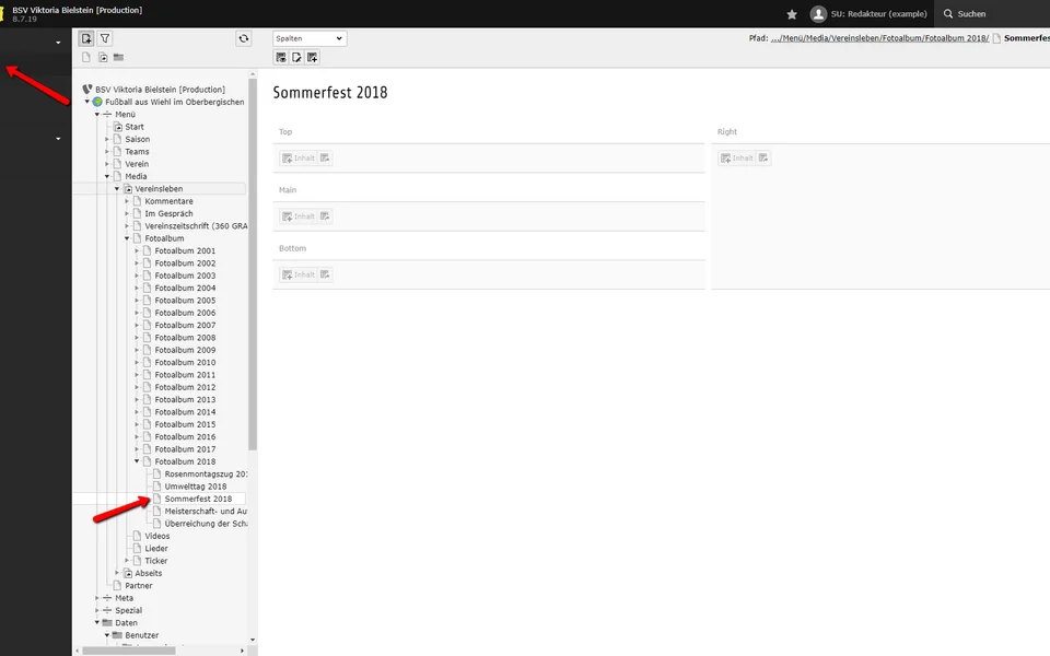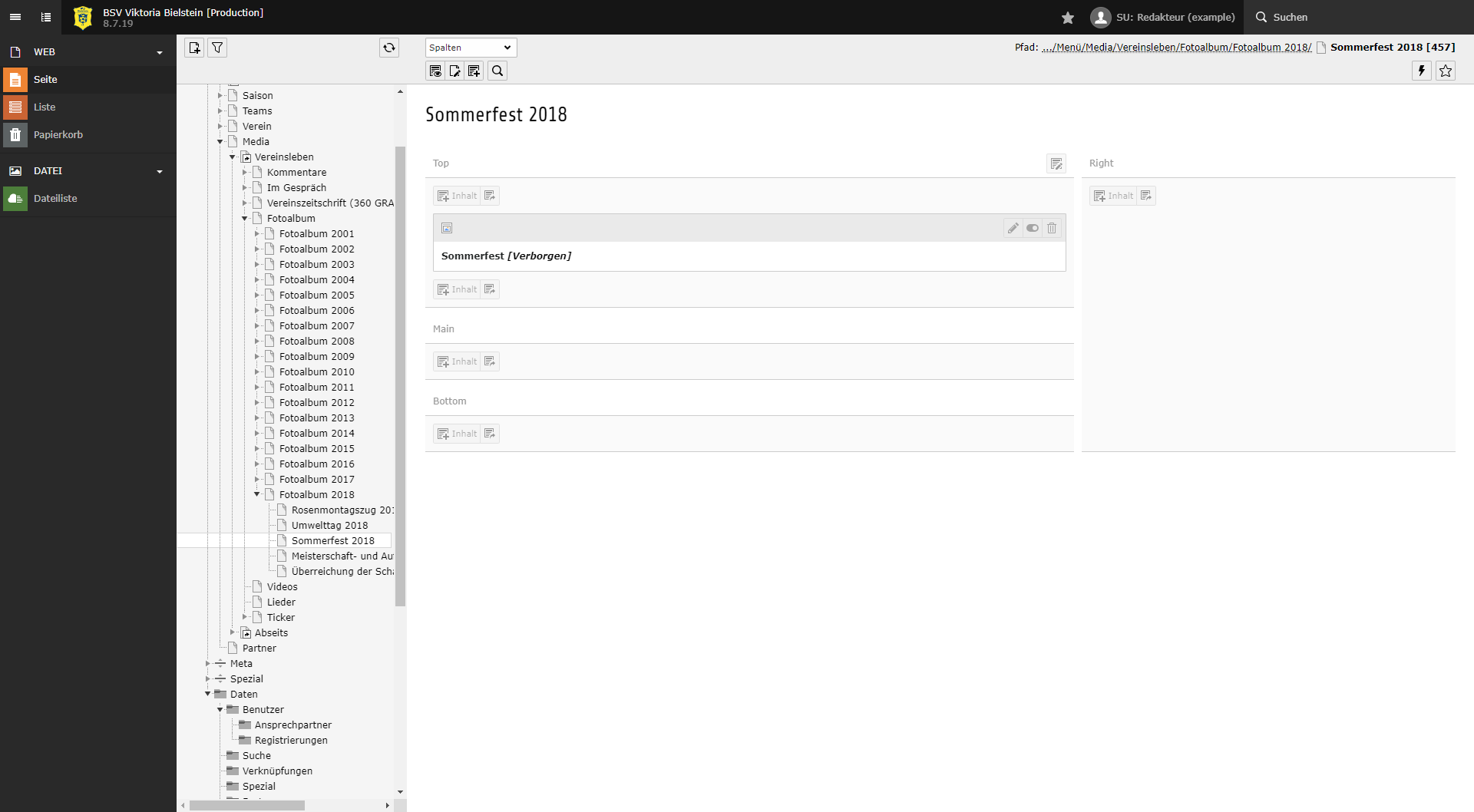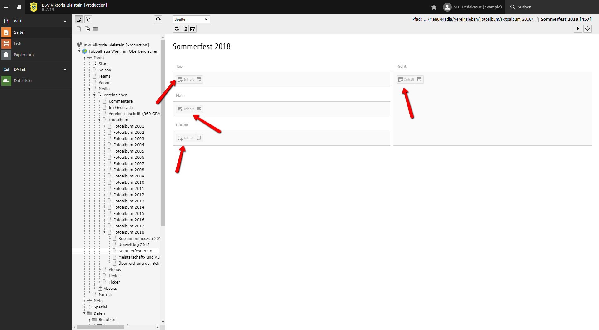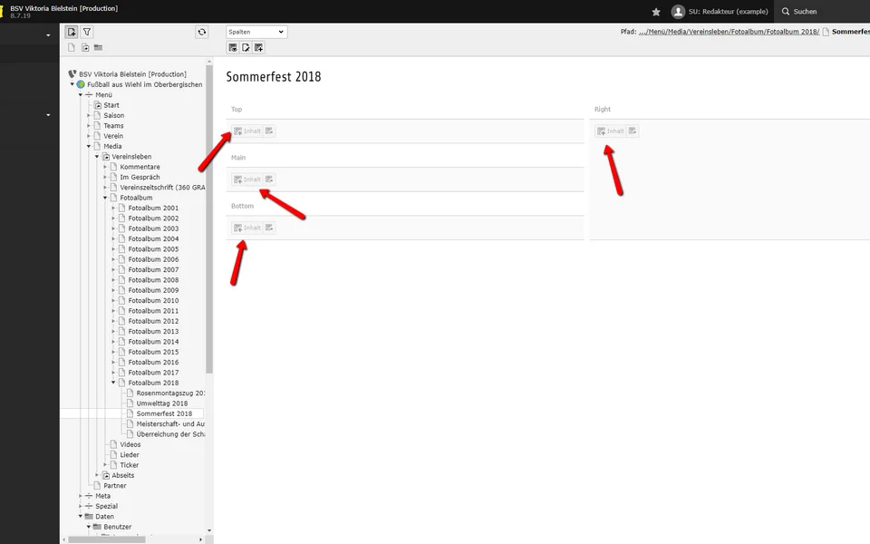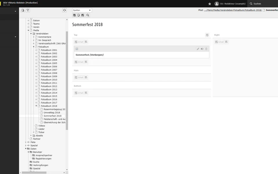 Nachdem das Inhaltselement geschlossen wurde, siehst du das Inhaltselement in der Spalte Top liegen.