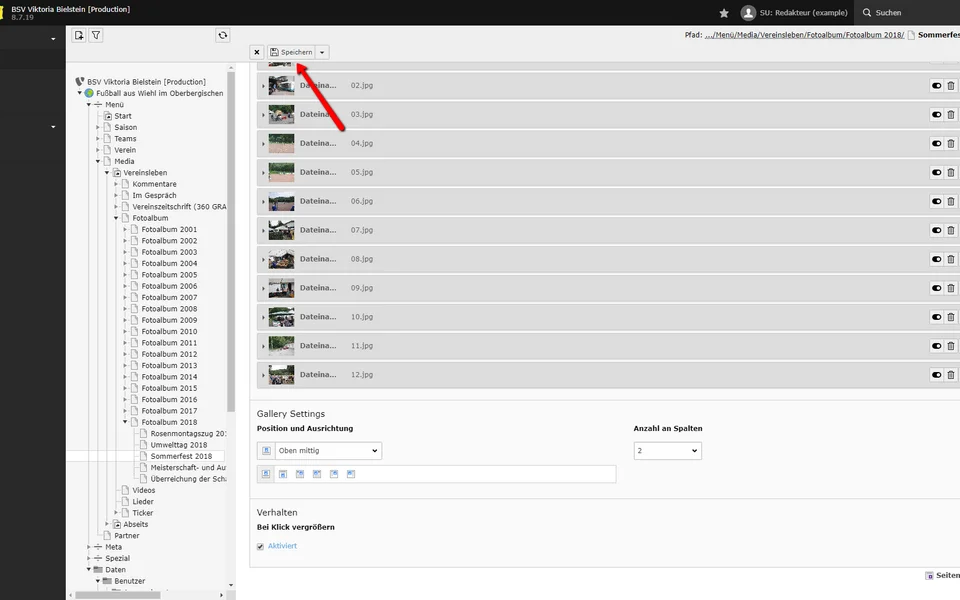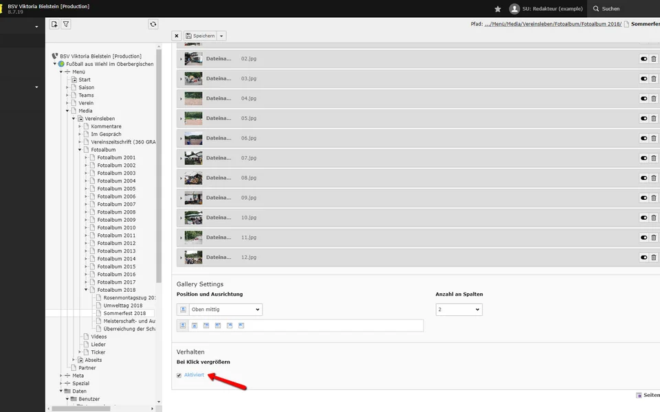 Im Anschluss muss die Option Bei Klick vergrößern aktiviert werden, damit sich die Bilder bei einem Klick in der Lightbox öffnen.