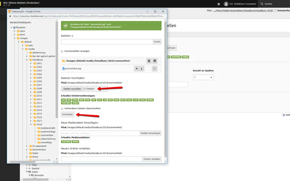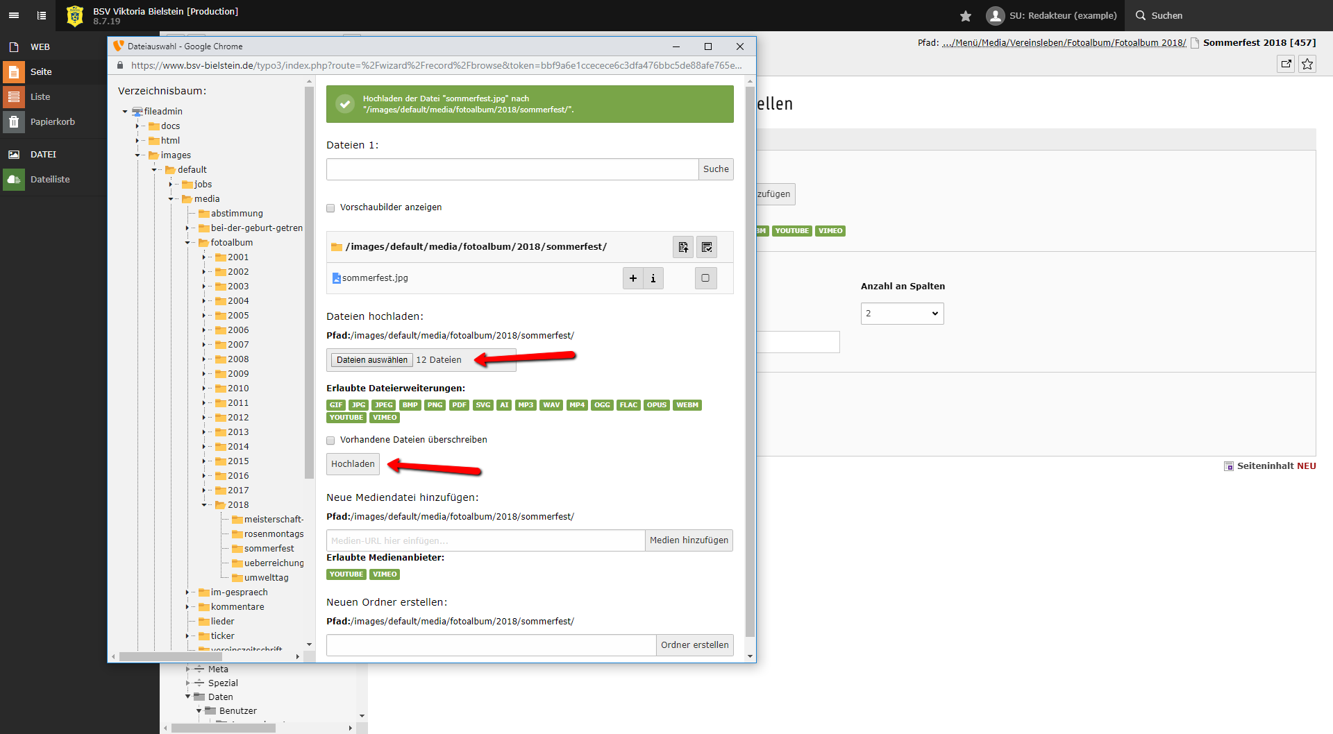 Mit einem Klick auf den Button Hochladen übertragst du die Bilder auf den Server.