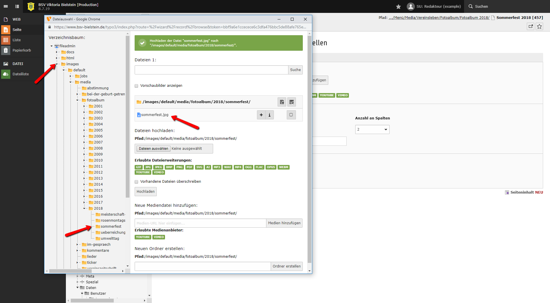 Um Inhalte hinzufügen oder bearbeiten zu können, musst du dich im Backend der Internetseite anmelden.