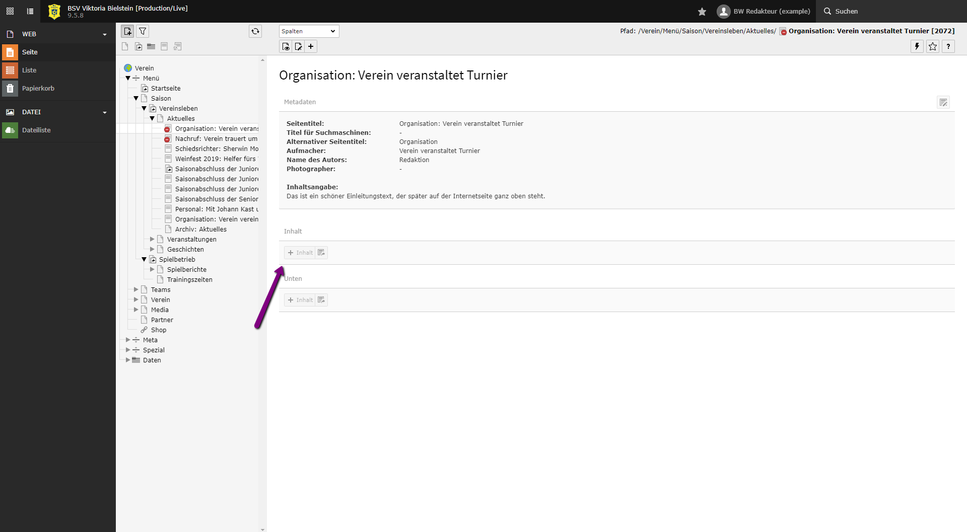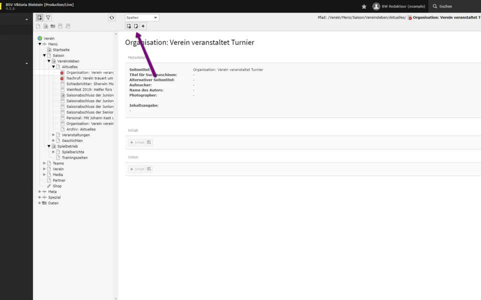 Wenn wir die Metadaten vollständig ausgefüllt haben, können wir den Inhalt der eigentlichen Seite pflegen. Wie das geht, erfährst du in der Anleitung Inhalte bearbeiten.