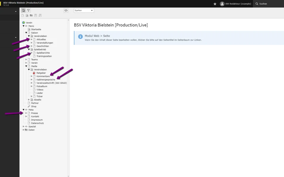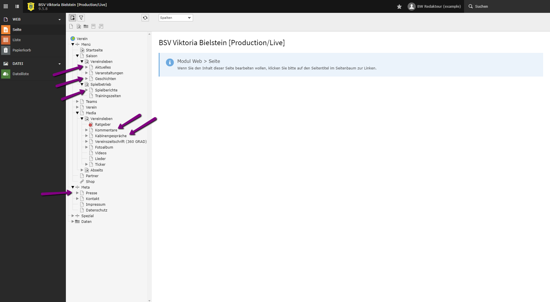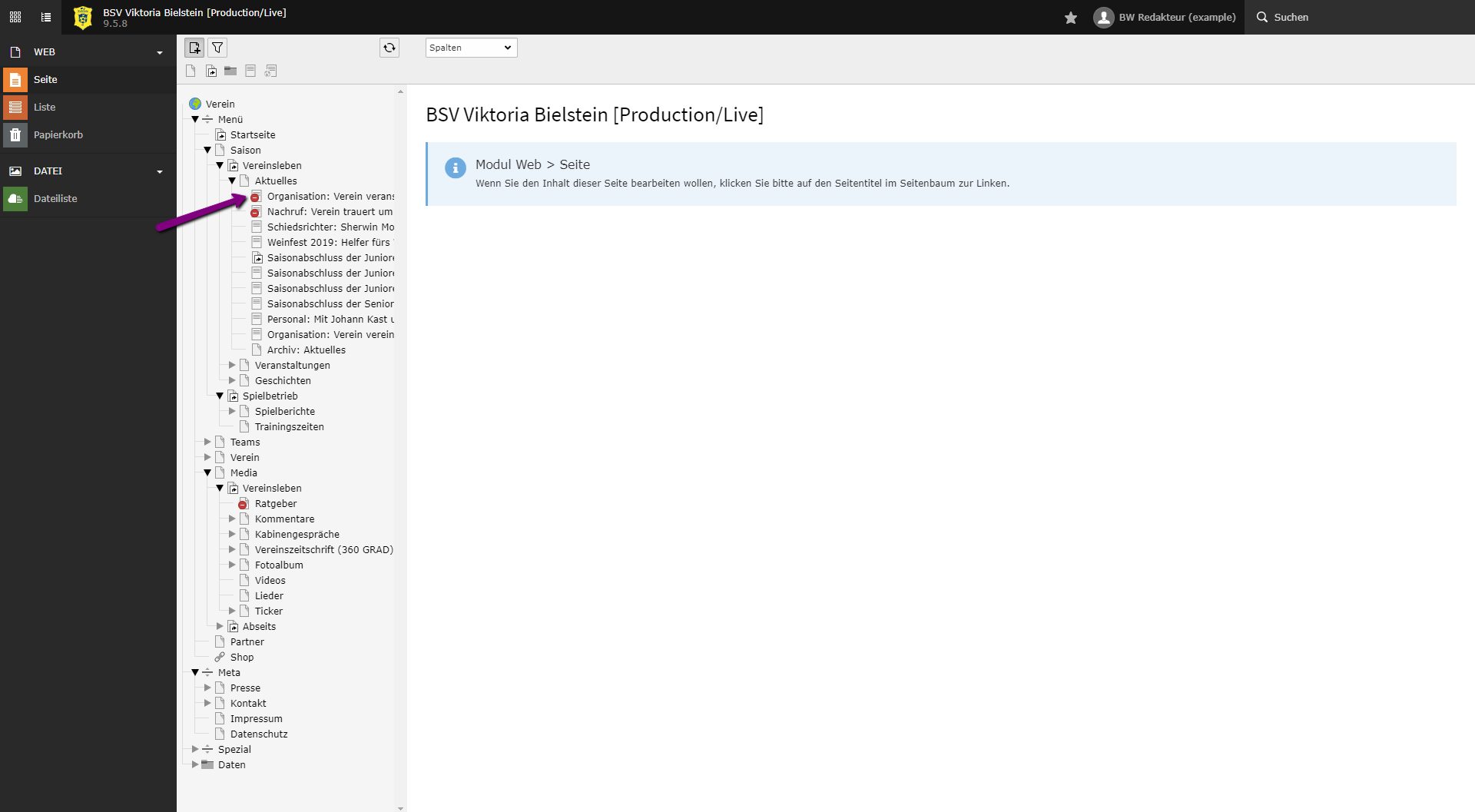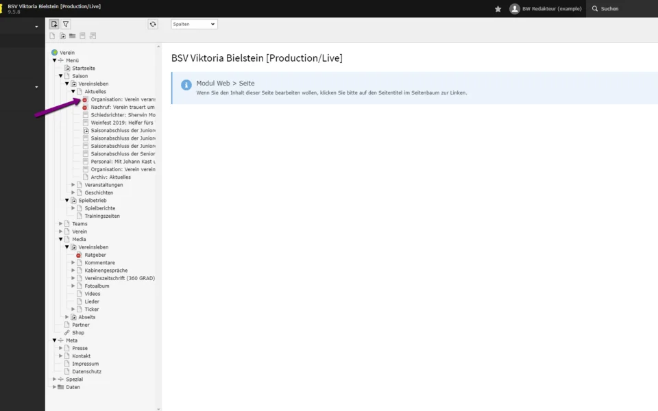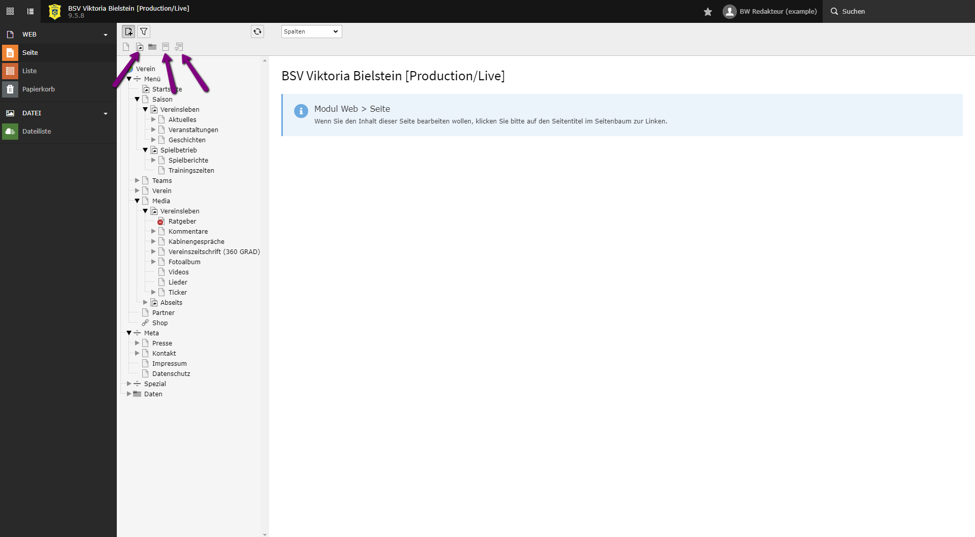 Mache dir zunächst Gedanken, was du hinzufügen möchtest. Wir unterscheiden bei den Nachrichten zwischen normalen Nachrichten, Spielberichten und Verweisen (auf interne Links) und müssen abhängig von unserer Entscheidung und der Kategorie, zu der wir eine Nachricht veröffentlichen möchten, unterschiedliche Seitentypen auswählen.